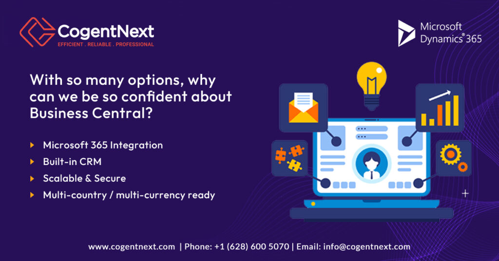 Interested in Dynamics 365 Business Central for your business? Contact us at CogentNext Technologies today! We specialize in designing, implementing, and deploying Business Central solutions tailored to your organizational needs. Let us help you take your business to the next level.